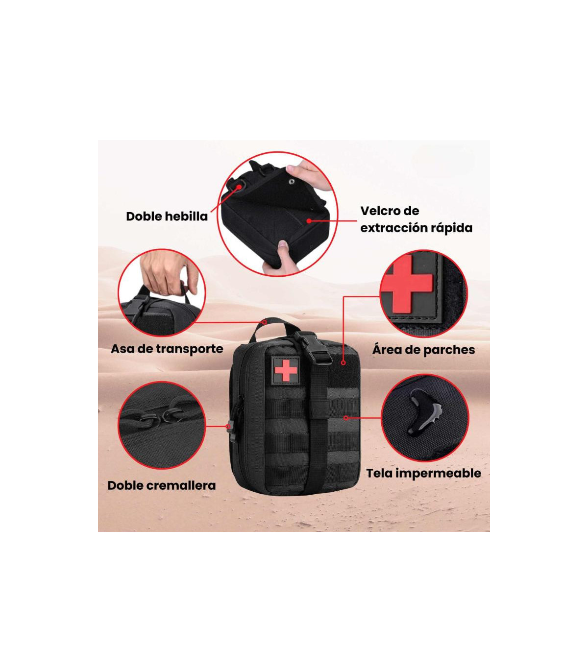 BOTIQUIN TACTICO DE TELA NEGRO 20x15CM